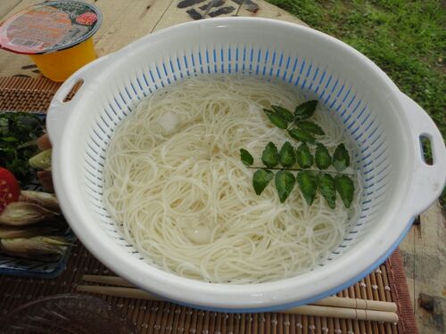 夏と言えば、やはり冷たいそうめんを食べたくなります。工房の庭で取れた、大葉やミョウガ、山椒の葉を使い、冷やしそうめんを調理して美味しく頂きました。 流しそうめんを意識して、冷たい水に入れた、冷やし素麺で食べるのが好きです。 夏にはこれです。…