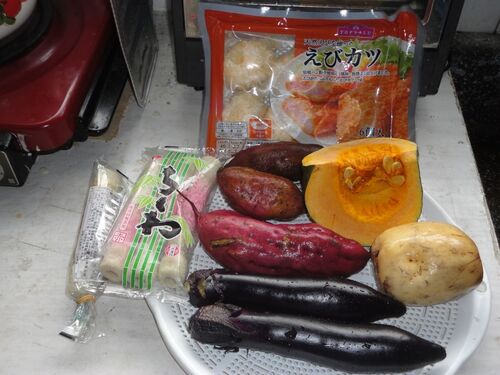 保存している野菜や、スーパーで安く仕入れた食材を使って大好きな天ぷらを調理しました。 ナスや、さつま芋、レンコンは特にお気に入りです。揚がりにくいサツマイモとレンコンは事前に茹でてから天ぷらにします。 天ぷらにする食材の調達。 サツマイモやか…