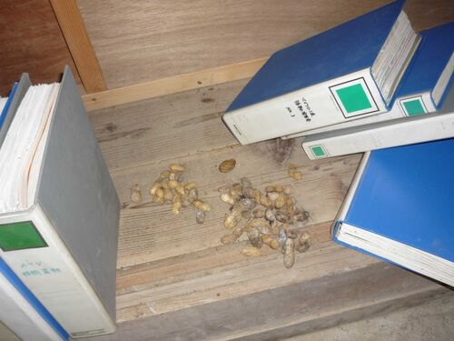 工房の工作室に保管しているA4のファイルを探しに行った際、ファイルの見えないところにたくさんの落花生の殻が見つかりました。 昨秋、最後の落花生を収穫し、工作室の傍らでカゴに入れて乾燥させていましたが、翌日行くと少し量が減ったな~と思っていま…
