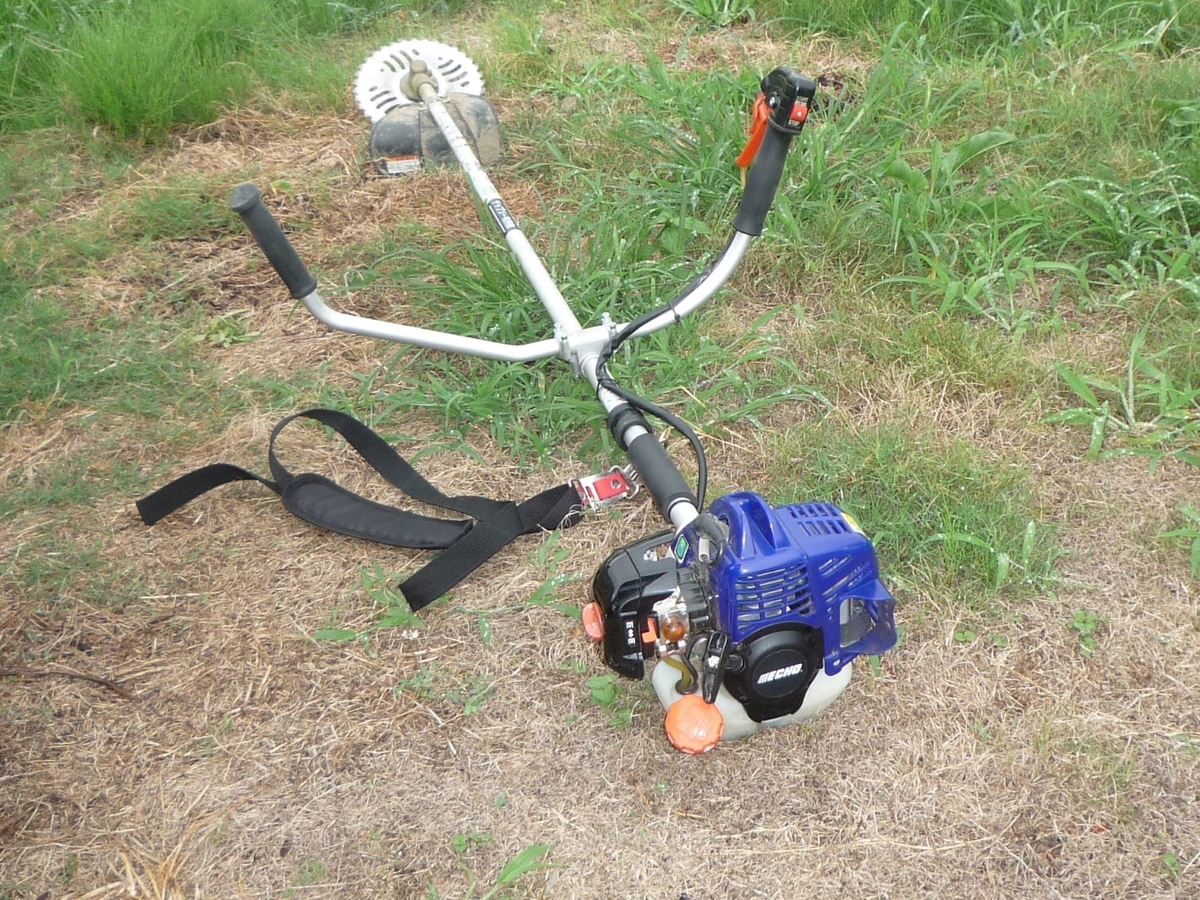 家庭菜園の草刈りをします。 雑草が伸びているので、チップソーの草刈り機を使います。