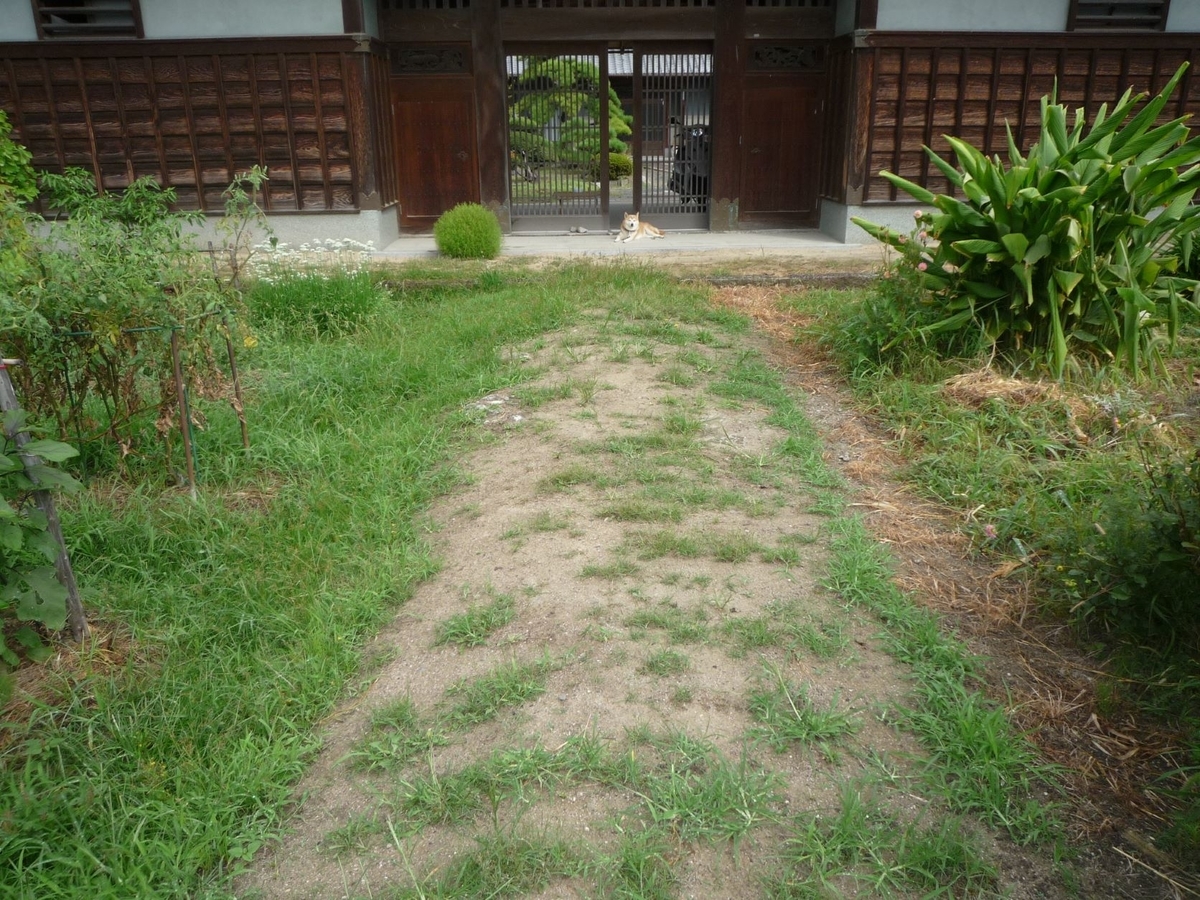 まず、納屋の正面入り口を刈ります。 じゅりちゃんがいる所です。