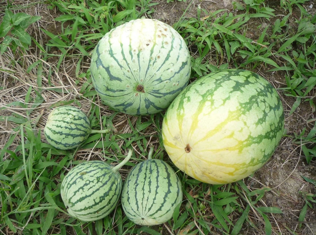 ※白色スイカは、縦じまが薄く、玉自体も白く見えます。今年初の栽培で、収穫が楽しみです。